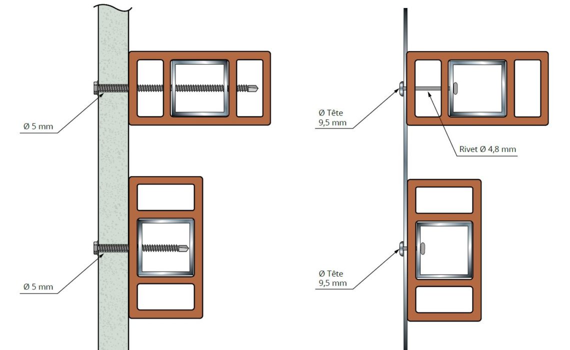 INSTALACIÓN VERTICAL - Distancia máxima entre barras 3,0m - altura máxima 50cm