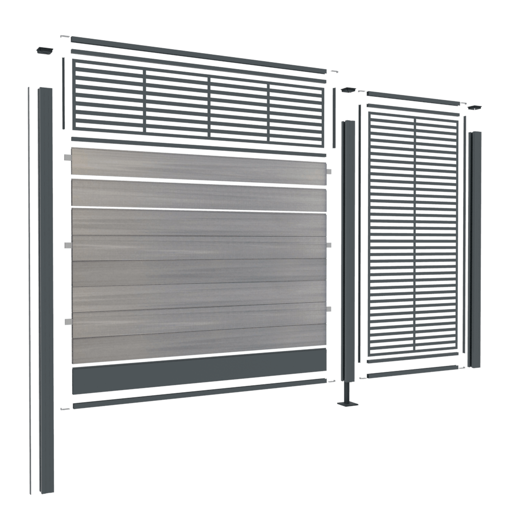 Fabricada en aluminio y composite de madera, la puerta dará un toque adicional a su valla BOSTON Fantasy, además de ser práctica. Le permitirá acceder directamente a su jardín con total seguridad.
